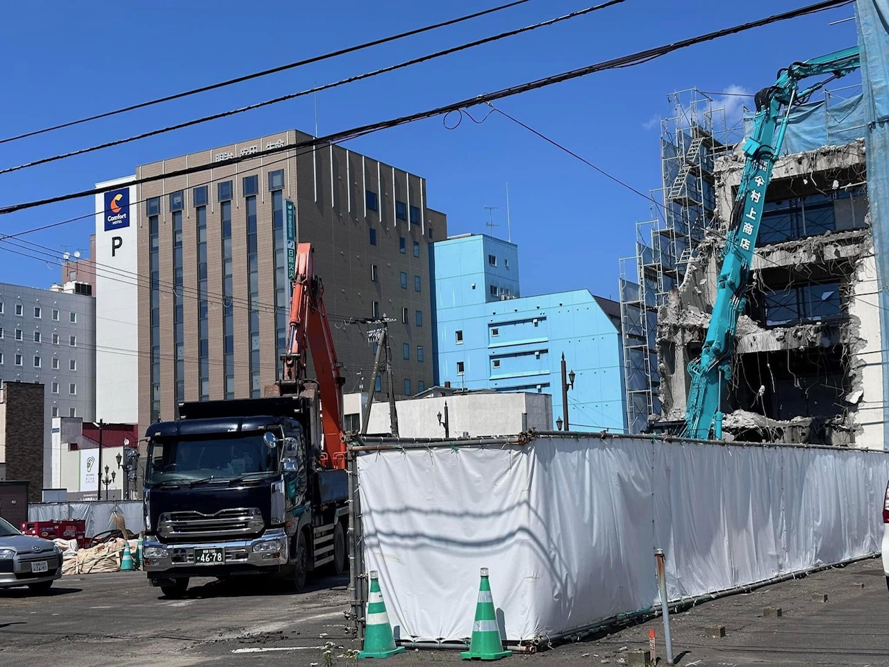 - ショベルローダー(除雪車)による除雪と、ダンプでの雪堆積場への運搬。